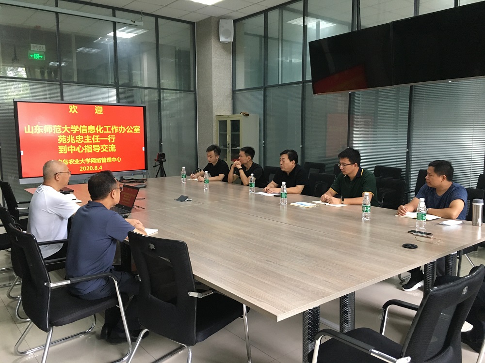 2020年8月4日,山東師范大學信息化工作辦公室苑兆忠主任一行六人到我中心調研考察,中心主任徐鵬民及相關業務負責人與來賓進行交流。