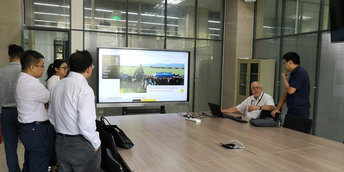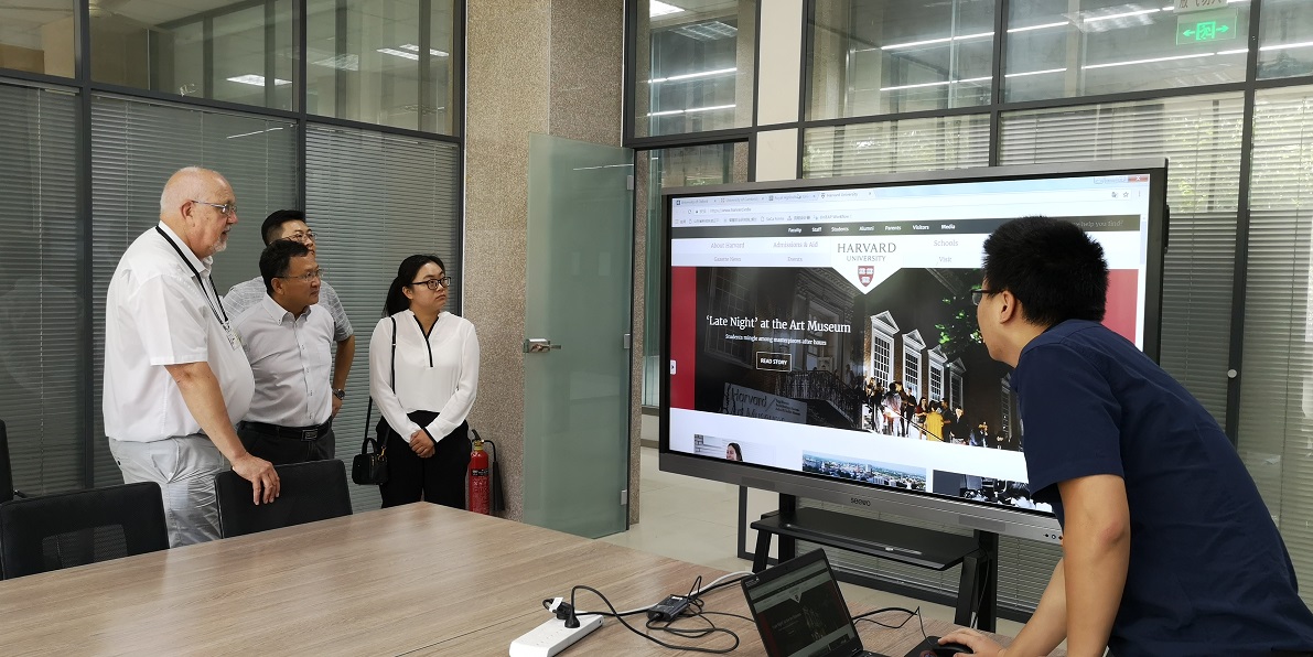 代表團成員Steve Finch詳細了解了學校信息服務情況,現場考察了數據中心機房、監控室,并親自操作,訪問了英皇農大的網站,試著登錄了英皇農大的信息服務系統,對學校信息化設施、管理、服務,表示滿意。