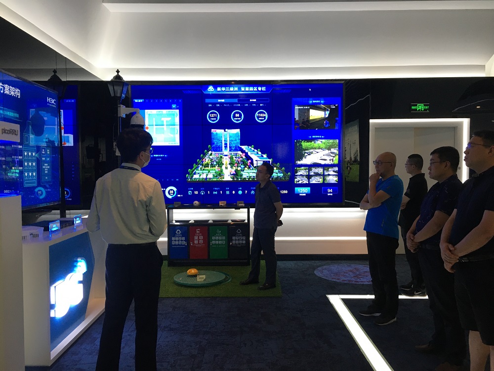 中心一行參觀了新華三集團的產品和解決方案展示大廳,考察調研新華三集團的新基建背景下基于5G、人工智能、大數據技術的園區網絡建設方案及產品。