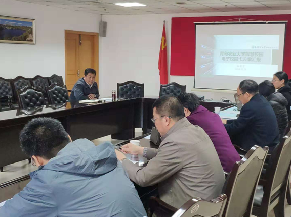 11月26日上午,青島農業大學電子校園卡建設工作會議在主樓10會議室召開。校長朱連勤、財務處李萍處長、學生工作部(處)王清春部長、后勤管理處張廣偉處長、法律事務辦李乃蓉以及網絡管理中心相關老師參加會議。